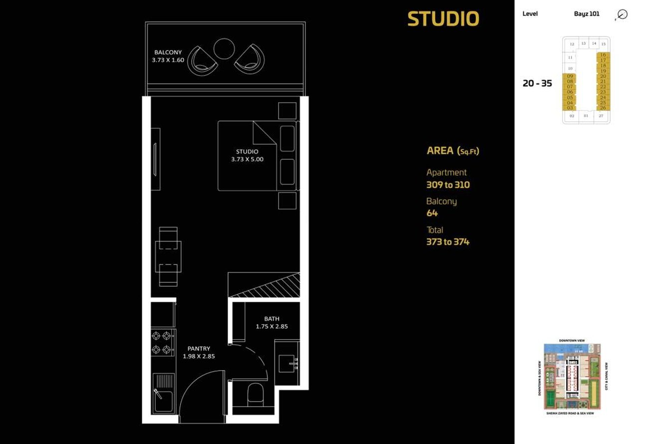The newest gem in Danube Properties’ portfolio, BAYZ 101 at Business Bay, offers 1, 2, and 3-bedroom apartments along with first-rate design studios. With 101 floors, this prestigious project is among the tallest towers in the city. presenting a stunning vista that includes the Burj Khalifa, Downtown Dubai, Sheikh Zayed Road, Dubai Canal, Jumeirah, and the captivating coastline.
