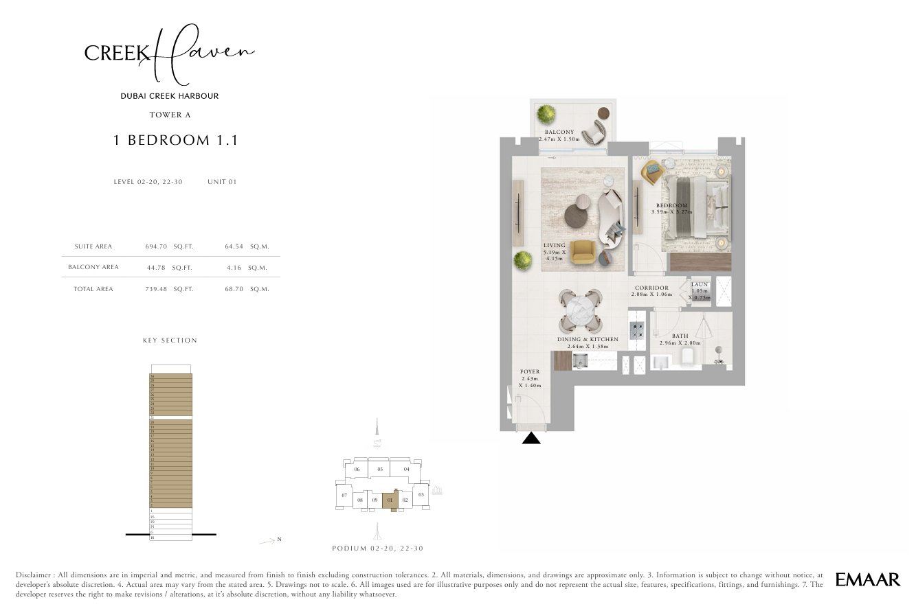 - Close connectivity to Dubai’s major lifestyle attractions, including Creek Beach, Creek Marina, Central Park, and the iconic viewing point at Dubai Creek Harbour.