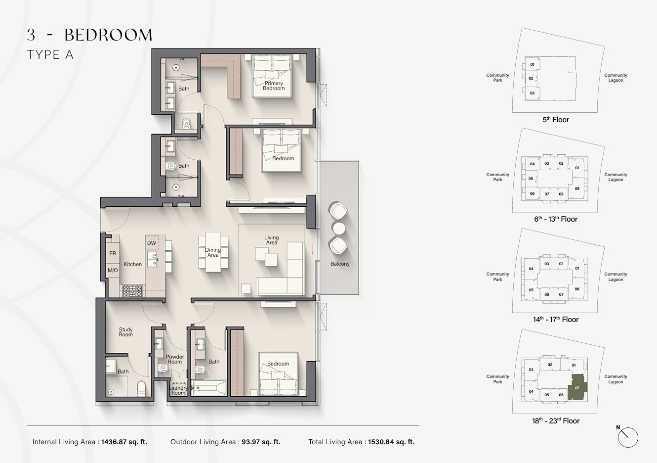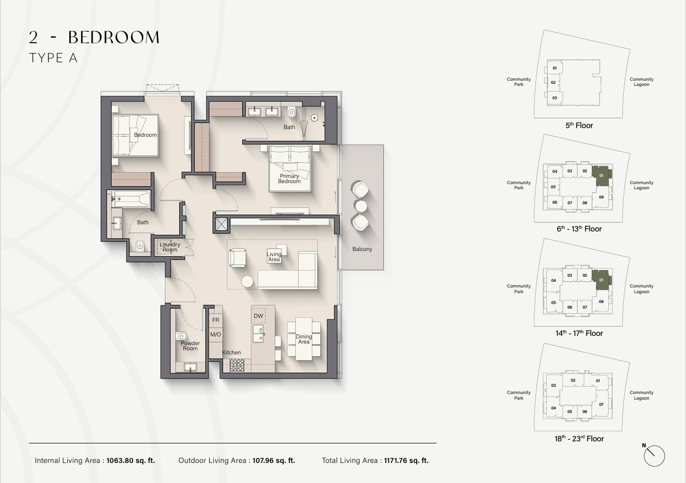 - Premium selection of 1-, 2-, & 3-bedroom lagoon-facing residences in MBR City