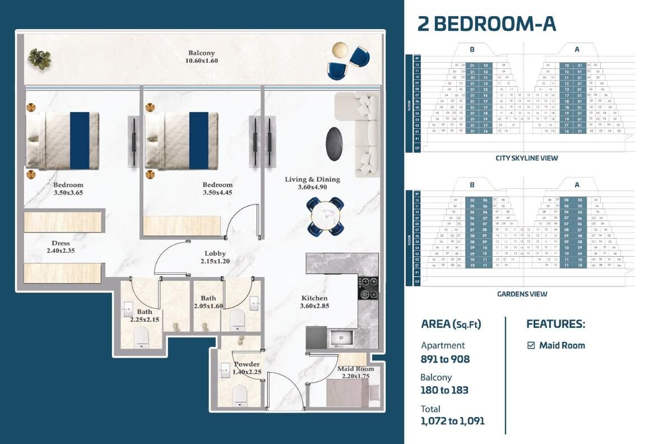 - Studios, 1, 2 & 3-bedroom apartments with convertible layouts and options for office or maid’s room.